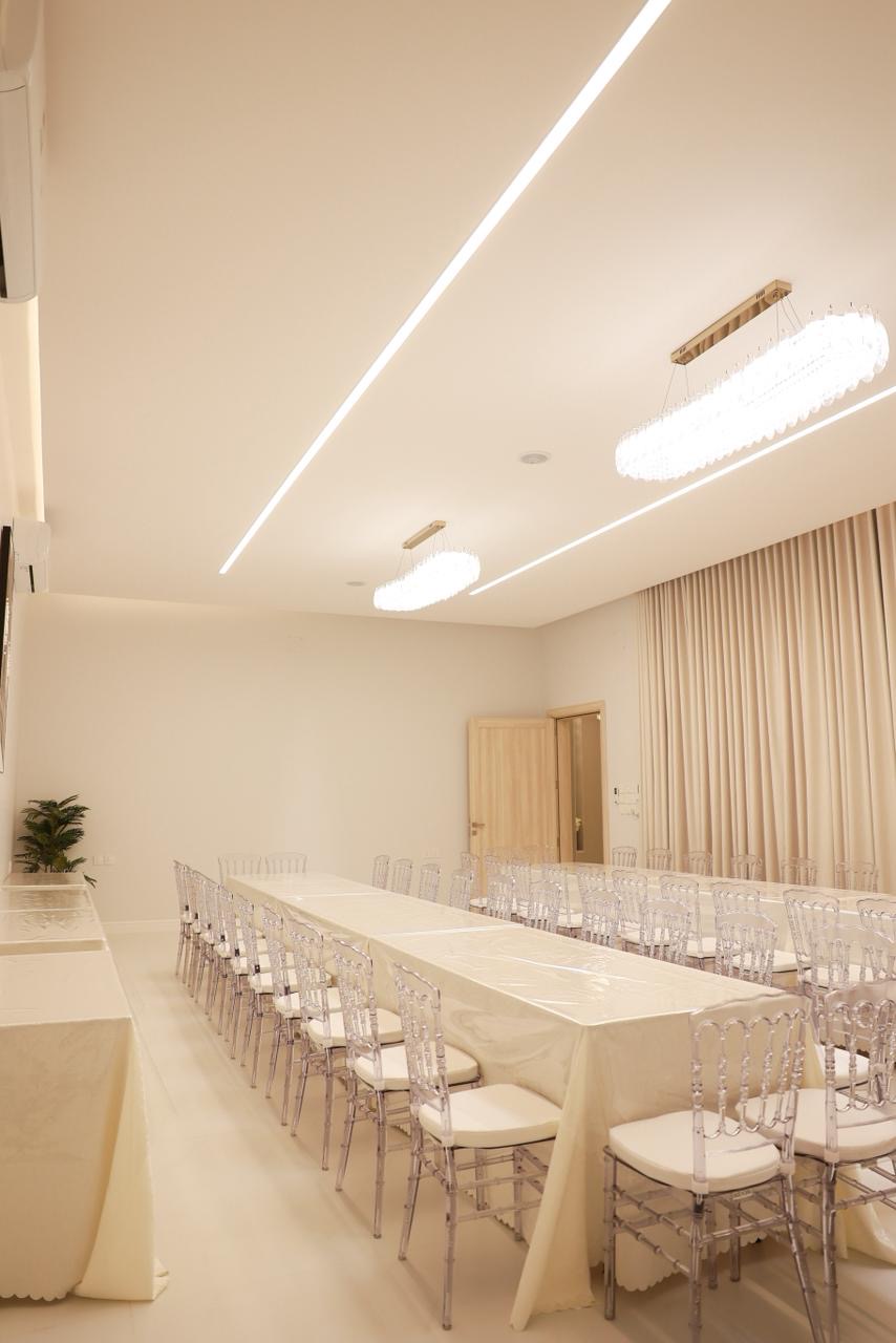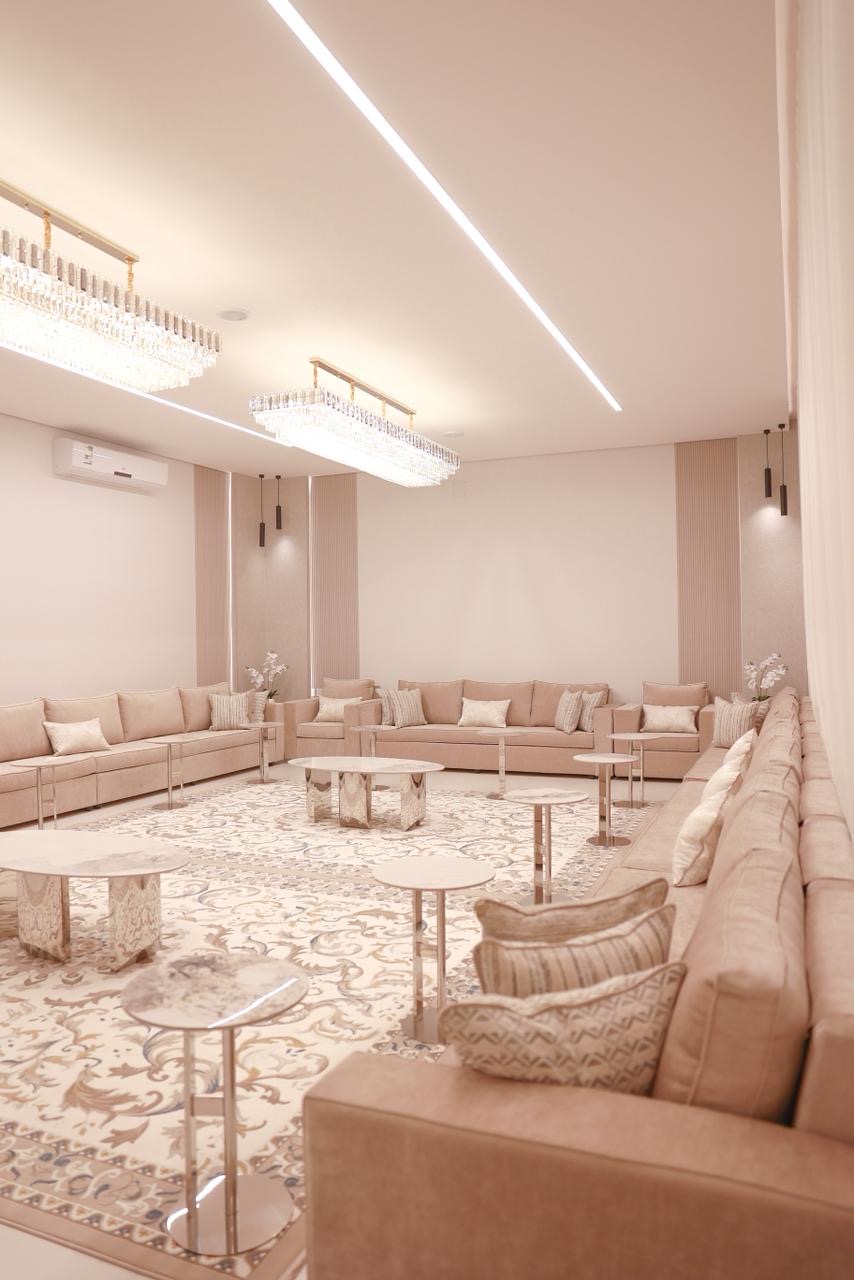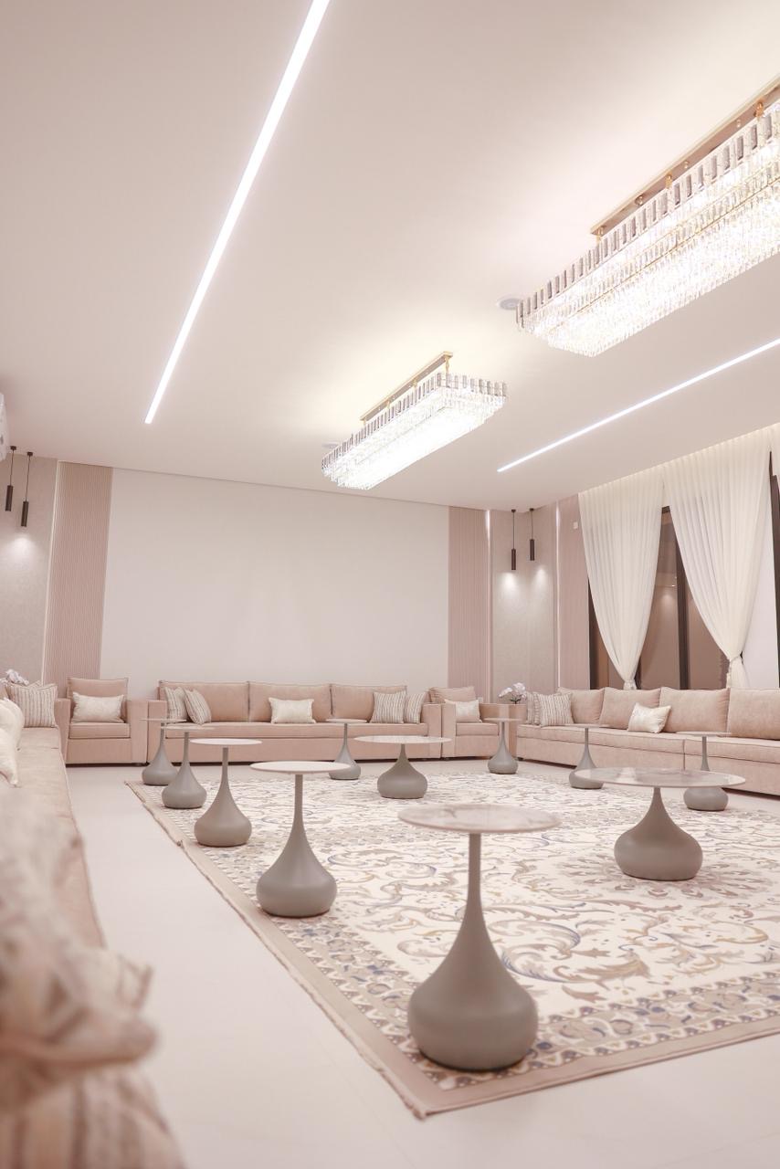 صالة رجال تكفي 40 شخص بالاضافة الي مجلس مختصر يتسع 20 شخص مع إطلالات جميلة بتحكم (شتر) وقسم نسائي واسع يتكون من صالة تتسع ل45 شخص مع غرفه تبديل ( عبايات) بالاضافة الي قسم معزول يتكون من صالة وغرفتين نوم .
